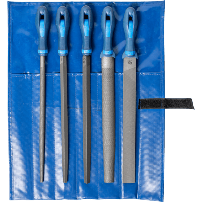 Kvalitné pilníky pre priemysel a obchod v ochrannom a klimaticky odolnom PVC obale na uskladnenie v náradí alebo na pracovnej doske. Každý pilník je vybavený ergonomickou rukoväťou. Priečne rezanie pre hrubé odstraňovanie materiálu a opracovanie.