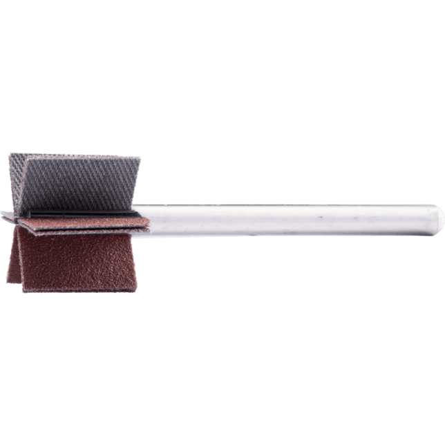 Na montovaných lamelových kolesách sú lamely vyrobené z abrazívneho materiálu usporiadané radiálne okolo osi náradia v štruktúre pripomínajúcej ventilátor. Ich flexibilita im umožňuje dokonale sa prispôsobiť veľmi jemným kontúram obrobku a sú tiež vhodné pre veľmi malé otvory a vnútorné priemery rúr. Abrasívne zrnko je zakotvené v pevnom, flexibilnom textilnom podklade pomocou resinoidného spojiva. V norme ISO 3919 sú montované lamelové kolesá označené ako "lamelové kolesá s hriadeľom". Vhodné na jemné brúsenie.