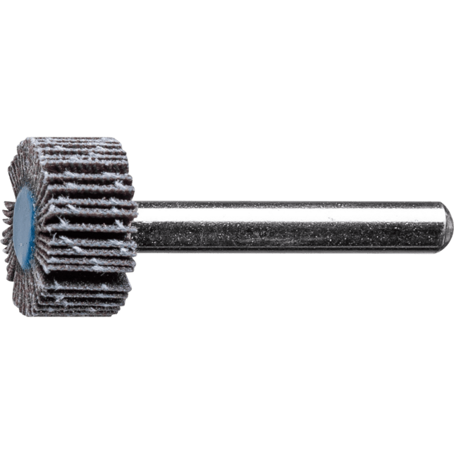 Na montovaných lamelových kolesách sú lamely vyrobené z abrazívneho materiálu usporiadané radiálne okolo osi náradia v štruktúre pripomínajúcej ventilátor. Ich flexibilita im umožňuje dokonale sa prispôsobiť kontúram obrobku. Abrazívne zrnko je zakotvené v robustnom, flexibilnom textilnom podklade pomocou živicovej väzby. V norme ISO 3919 sú montované lamelové kolesá označené ako "lamelové kolesá s hriadeľom". Pre všeobecnú brúsiacu prácu na komponentoch vyrobených z hliníka, medi, bronzu, titánu a plastov vystužených vláknami. Osobitne odporúčané na použitie na titánových zliatinách. Ideálne na použitie v leteckom priemysle, najmä tam, kde je SiC jediným schváleným abrazívom, napr. na komponentoch motorov.