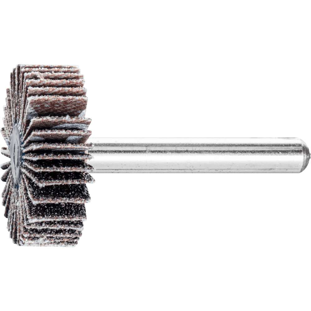 Na montovaných lamelových kolesách sú lamely vyrobené z abrazívneho materiálu usporiadané radiálne okolo osi náradia v štruktúre pripomínajúcej ventilátor. Ich flexibilita im umožňuje dokonale sa prispôsobiť kontúram obrobku. Abrazívne zrnko je zakotvené v pevnom, flexibilnom textilnom podklade pomocou živicovej väzby. V norme ISO 3919 sú montované lamelové kolesá označené ako "lamelové kolesá s hriadeľom". Pre všeobecnú brúsiacu prácu na komponentoch vyrobených z hliníka, medi, bronzu, titánu a plastov vystužených vláknami. Osobitne odporúčané na použitie na titánových zliatinách. Ideálne pre použitie v leteckom priemysle, najmä tam, kde je SiC jediným schváleným abrazívom, napr. na komponentoch motorov.