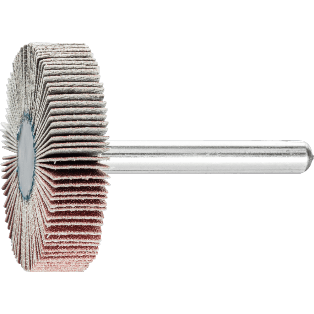 Na montovaných lamelových kolesách sú lamely vyrobené z abrazívneho materiálu usporiadané radiálne okolo osi náradia v štruktúre pripomínajúcej ventilátor. Ich flexibilita im umožňuje dokonale sa prispôsobiť kontúram obrobku. Abrazívne zrnko je zakotvené v robustnom, flexibilnom textilnom podklade pomocou živicovej väzby. V norme ISO 3919 sú montované lamelové kolesá označené ako "lamelové kolesá s hriadeľom". Pre všeobecné aplikácie od hrubého po jemné brúsenie.