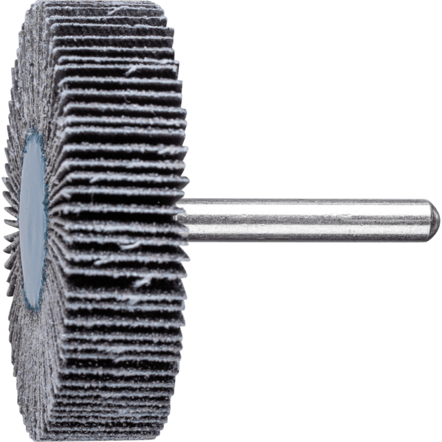 Na montovaných lamelových kolesách sú lamely vyrobené z abrazívneho materiálu usporiadané radiálne okolo osi náradia v štruktúre pripomínajúcej ventilátor. Ich flexibilita im umožňuje dokonale sa prispôsobiť kontúram obrobku. Abrazívne zrnko je zakotvené v robustnom, flexibilnom textilnom podklade pomocou živicovej väzby. V norme ISO 3919 sú montované lamelové kolesá označené ako "lamelové kolesá s hriadeľom". Pre všeobecnú brúsenie komponentov vyrobených z hliníka, medi, bronzu, titánu a plastov vystužených vláknami. Osobitne odporúčané na použitie na titánových zliatinách. Ideálne pre použitie v leteckom priemysle, najmä tam, kde je SiC jediným schváleným abrazívom, napr. na komponenty motorov.