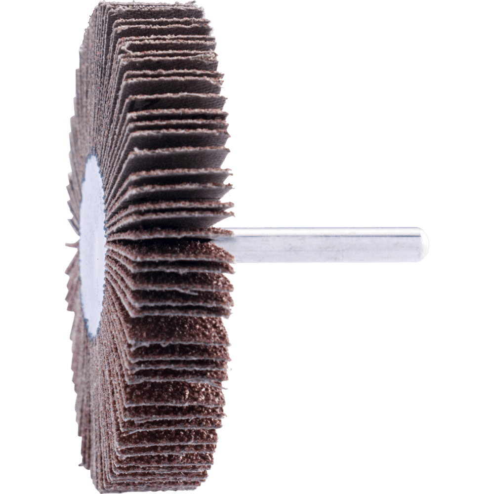 Na montovaných lamelových kolesách sú lamely vyrobené z abrazívneho materiálu usporiadané radiálne okolo osi náradia v štruktúre pripomínajúcej ventilátor. Ich flexibilita im umožňuje dokonale sa prispôsobiť kontúram obrobku. Abrazívne zrnko je zakotvené v pevnom, flexibilnom textilnom podklade pomocou živicového spojiva. V norme ISO 3919 sú montované lamelové kolesá označené ako "lamelové kolesá s hriadeľom". Pre všeobecné aplikácie od hrubého po jemné brúsenie.
