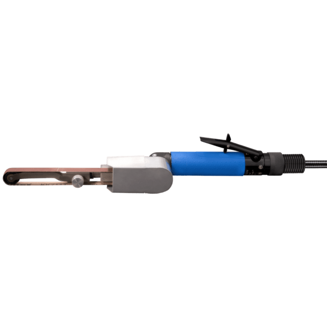 Výfukový smer vzduchu brúsky je vzadu. Vďaka páke ventilu má pohon vypínač pre mŕtveho muža. 1 m výfuková hadica a 2,5 m hadica na prívod vzduchu s 1/4" mužským závitovým pripojením a závitovým rýchlospojkou (STGI), ochranný kryt, 2 kľúče. Pásová brúska vrátane ramena na pripojenie pásovej brúsky BSVA 9/25 x 520.