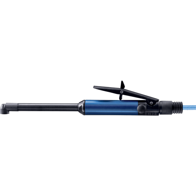 Hnací mechanizmus je vybavený montážou na hex nástroj. Smer výfuku vzduchového brúsky je vzadu. Veľmi tichý a robustný. Ideálny na odhrotovanie ťažko prístupných oblastí, ako sú otvory s priečnymi otvormi. 1 m výfuková hadica a 2,5 m hadica na prívod vzduchu s 1/4" mužským závitovým pripojením a závitovým rýchlospojkou (STGI).