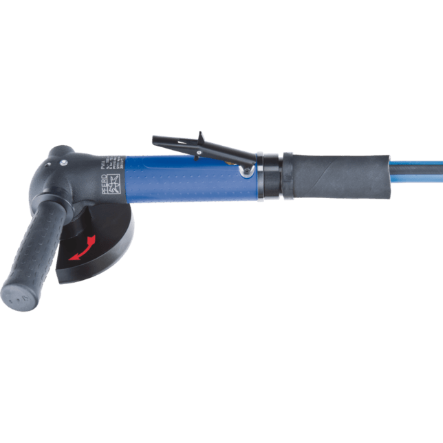 Hnací mechanizmus má závitové uchytenie náradia pre náradie so ženskými závitmi alebo prírubovým uchytením. Smer výfuku vzduchového brúsky je vzadu. Robustný dizajn vzduchovej brúsky ju robí vhodnou na ťažké použitie. Hnací mechanizmus je potrebné používať s olejom. Vďaka páke ventilu má hnací mechanizmus aj spínač pre mŕtveho muža. Max. priemer náradia až do 125 mm. 1 upínacia matica (č. položky 98980036), 2 prírubové skrutky (1x č. položky 98980037, 1x č. položky 98980038), 2 medzikusy (1x č. položky 98980039, 1x č. položky 98980040), 2 kľúče (1x č. položky 91244601, 1x č. položky 92785502), ochranný priemer 125 mm, antivibračná rukoväť.