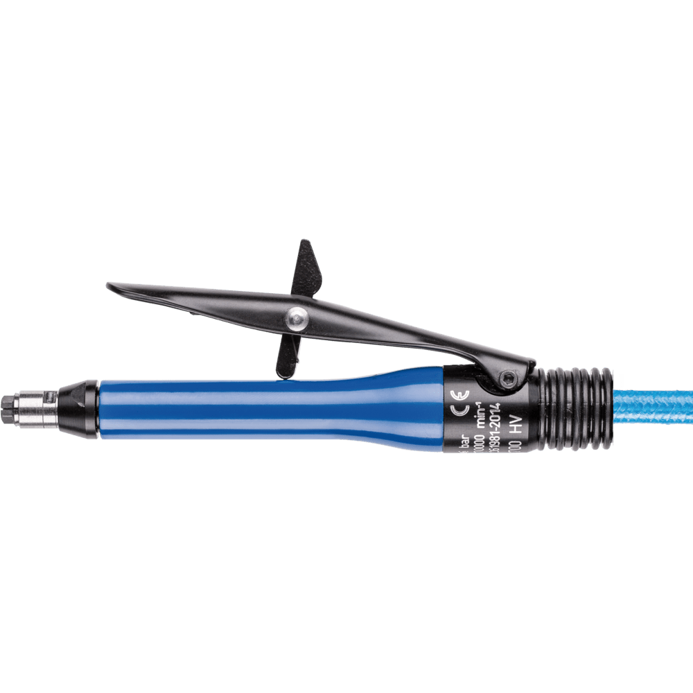 Hnací mechanizmus je vybavený upínacím nástrojom pre montované nástroje. Smer výfuku vzduchového brúsky je vzadu. Hnací mechanizmus má vysokú otáčkovú rýchlosť a musí sa používať s olejom. 0,75 m výfuková hadica a 2 m hadica na prívod vzduchu s 1/4" vonkajším závitom a závitovým rýchlospojkou (STGI), 3 mm upínací nástavec, 2 kľúče. Vďaka páke ventilu má hnací mechanizmus bezpečnostný spínač.