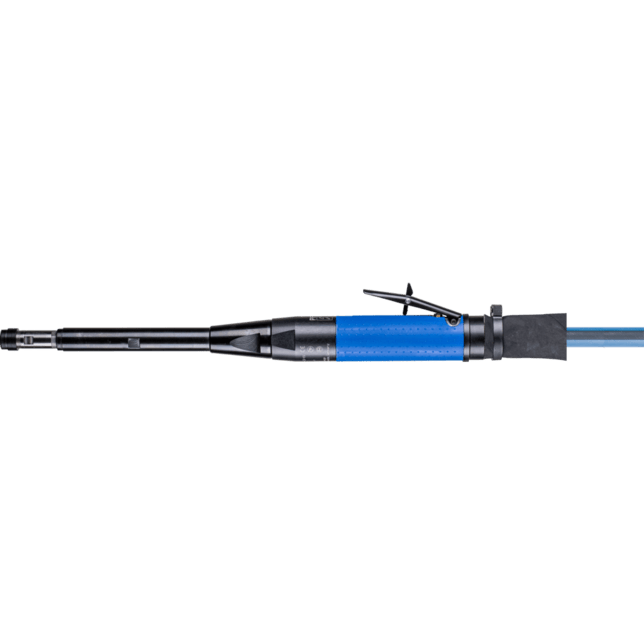 Hnací mechanizmus je vybavený upínacím nástrojom pre montované nástroje. Smer výfuku vzduchového brúsky je vzadu. Vzduchová brúska musí byť používaná s olejom. Vďaka páke na ovládanie plynu má hnací mechanizmus bezpečnostný spínač. Integrovaný odstredivý regulátor zabezpečuje konštantný výkon. 1 m výfuková hadica a 2,5 m hadica na prívod vzduchu s 1/2" vonkajším závitom, 6 mm upínací nástavec, 2 kľúče. Veľmi dlhý dizajn, obzvlášť vhodný na prácu v ťažko prístupných oblastiach.