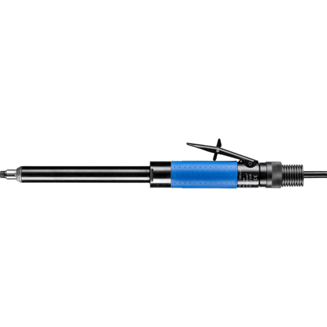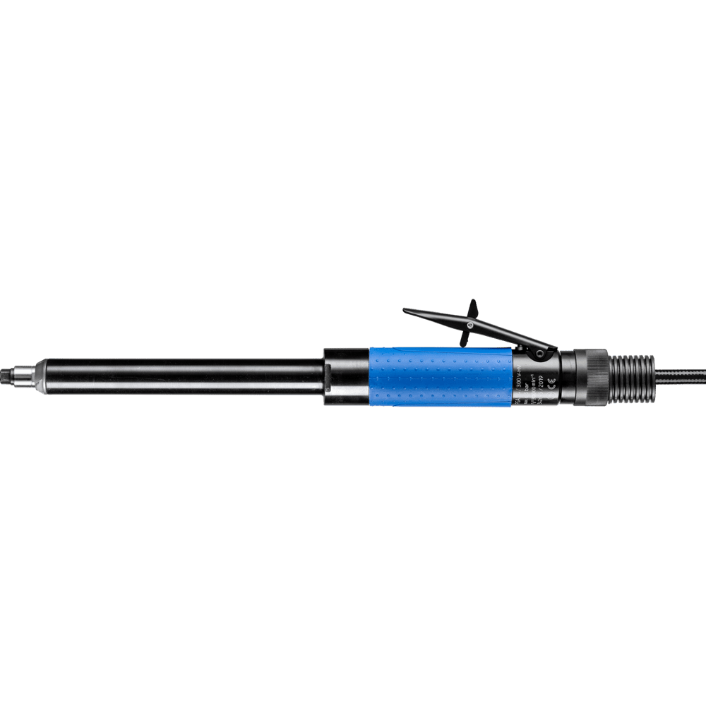Hnací mechanizmus je vybavený upínacím nástrojom pre montované nástroje. Smer výfuku vzduchového brúsky je vzadu. Vzduchová brúska sa musí používať s olejom. Vďaka páke ventilu má hnací mechanizmus bezpečnostný spínač. Vďaka svojmu predĺženému dizajnu je hnací mechanizmus ideálny na prácu v ťažko prístupných oblastiach. 1 m výfuková hadica a 2,5 m hadica na prívod vzduchu s 1/4" vonkajším závitom a závitovým rýchlospojkou (STGI), 6 mm upínací nástavec, 2 kľúče.