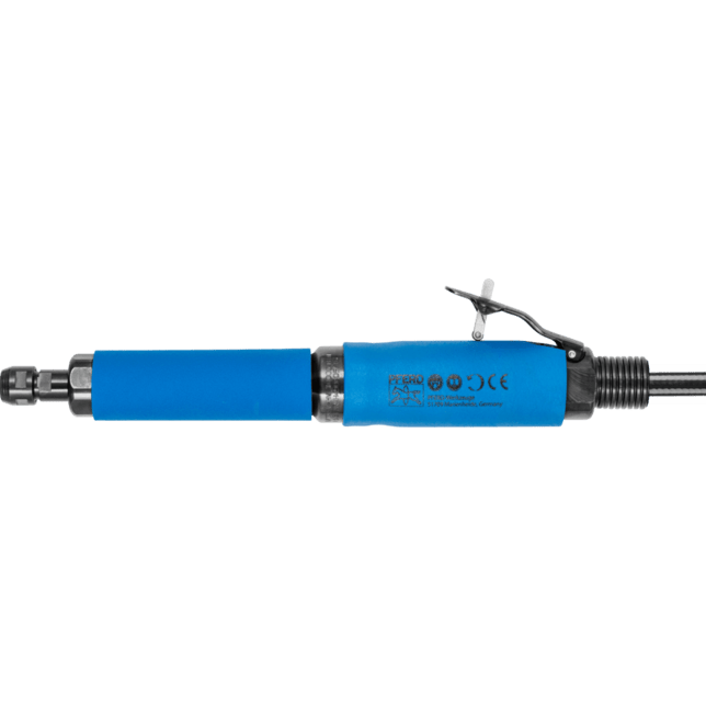 Hnací mechanizmus je vybavený upínacím nástrojom pre montované nástroje. Smer výfuku vzduchového brúsky je vzadu. Vzduchová brúska s integrovaným odstredivým regulátorom musí byť používaná s olejom. Hnací mechanizmus v predĺženej verzii. Vďaka páke na ovládanie má vypínač pre mŕtveho muža. 1 m výfuková hadica a 3 m hadica na prívod vzduchu s 1/4" vonkajším závitom a závitovým rýchlospojkou (STGI), 6 mm upínací nástroj, 2 kľúče.