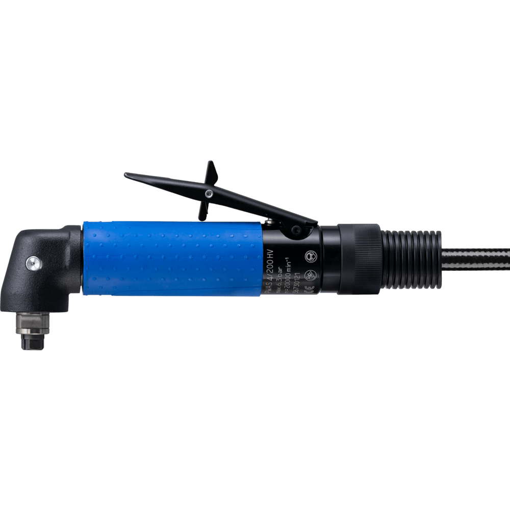 Hnací mechanizmus je vybavený upínacím nástrojom pre montované nástroje. Smer výfuku vzduchového brúsky je vzadu. Vďaka nízkej výške hlavy pod uhlom je vzduchová brúska ideálna na prácu v ťažko prístupných oblastiach. Musí sa používať s olejom. Vďaka páke ventilu má hnací mechanizmus bezpečnostný spínač. 1 m výfuková hadica a 2,5 m hadica na prívod vzduchu s 1/4" vonkajším závitom a závitovým rýchlospojkou (STGI), 6 mm upínací nástroj, 2 kľúče.