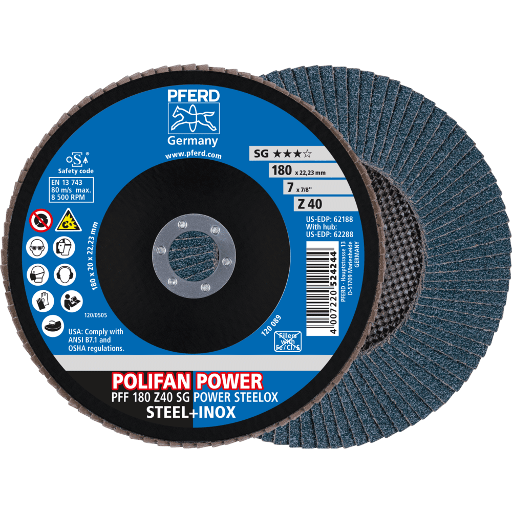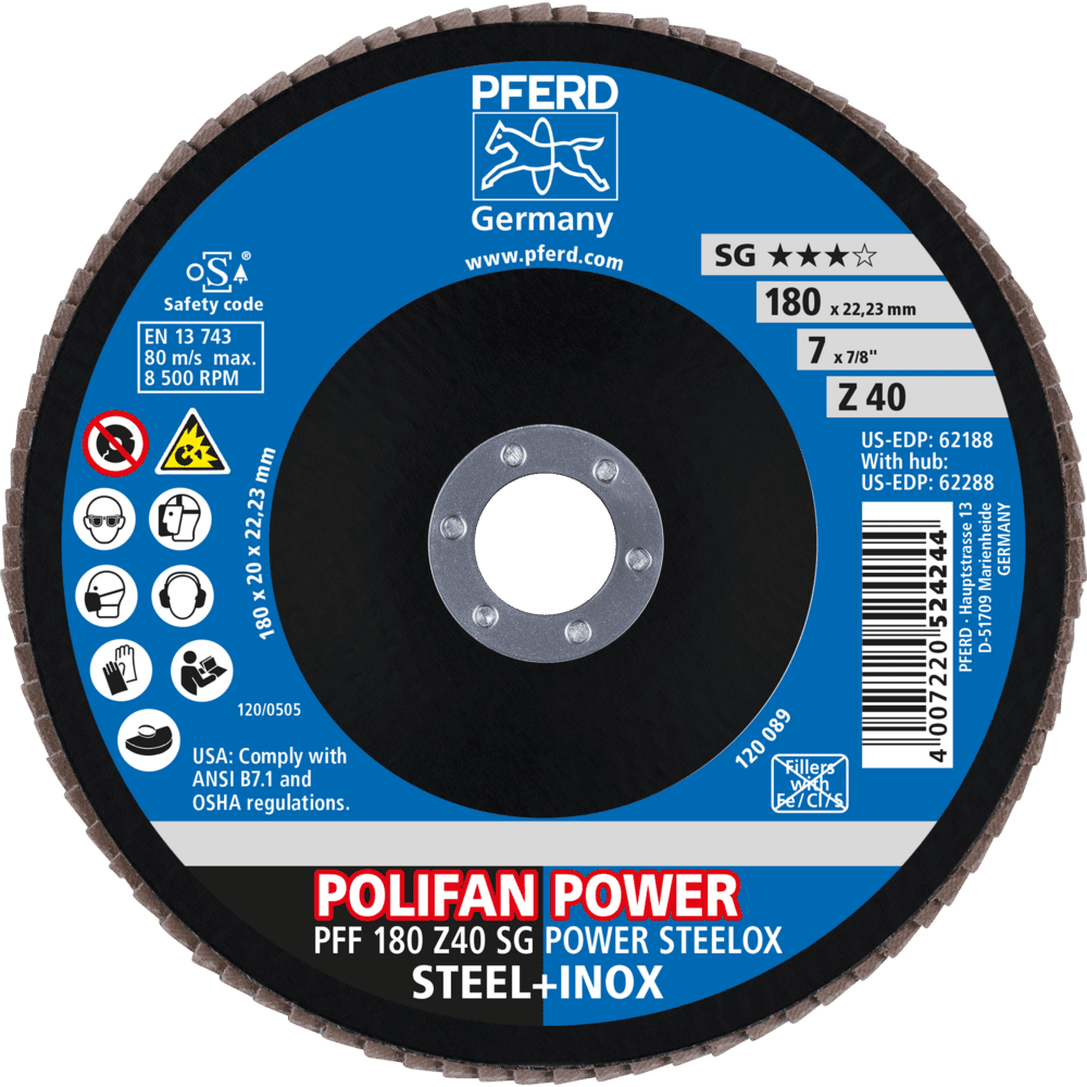 Široká ponuka Performance Line SG ponúka vysoko výkonné riešenie nástrojov pre každú aplikáciu a každý materiál. Nástroje Performance Line SG dosahujú optimálne výsledky s maximálnou hospodárnosťou. Disk POLIFAN POWER sa vyznačuje agresívnou rýchlosťou odstraňovania materiálu a vynikajúcou životnosťou nástroja pri dosahovaní maximálnej hospodárnosti. Je to najlepší konvenčný flap disk pre oceľ. Pre náročných používateľov je vysoko výkonný flap disk POLIFAN POWER prvou voľbou na svete pre obrábanie ocele. Univerzálny flap disk POLIFAN ponúka optimálnu kombináciu vynikajúcej životnosti nástroja a maximálnej rýchlosti odstraňovania materiálu.