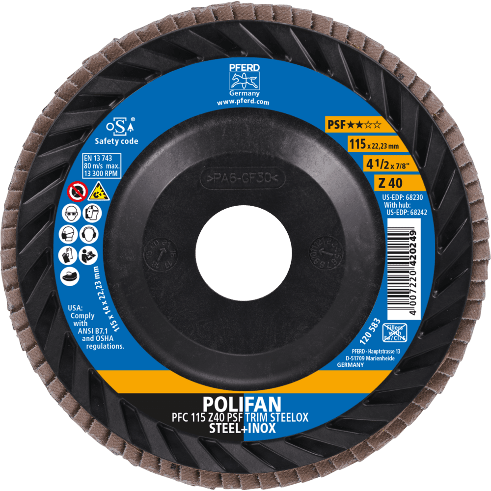Vstupná rada Universal Line PSF obsahuje robustné náradie na spracovanie najbežnejších materiálov. Náradie Universal Line PSF dosahuje dobré výsledky s vysokou ekonomickou efektívnosťou. POLIFAN lamelový kotúč na oceľ a nerezovú oceľ (INOX) s agresívnou rýchlosťou odstraňovania materiálu a dobrou životnosťou náradia. POLIFAN lamelový kotúč s plastovým podkladom na orezávanie náradia.