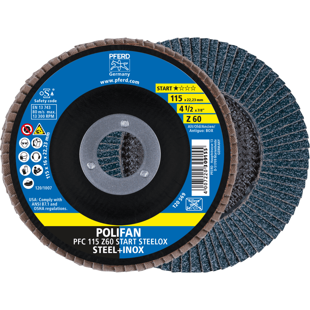 Rada START ponúka spoľahlivú kvalitu PFERD TOOLS pre obchod a montážne práce. Kompaktná rada obsahuje všetky konvenčné nástroje na prácu s oceľou a nerezovou oceľou (INOX). To znamená, že môžete dosiahnuť spoľahlivé výsledky za atraktívne nákupné náklady. POLIFAN lamelový kotúč s dobrou rýchlosťou odstraňovania materiálu a dobrou životnosťou nástroja.