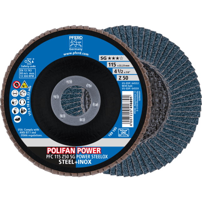 Široká ponuka Performance Line SG ponúka vysoko výkonné riešenie nástrojov pre každú aplikáciu a každý materiál. Nástroje Performance Line SG dosahujú optimálne výsledky s maximálnou hospodárnosťou. Disk POLIFAN POWER sa vyznačuje agresívnou rýchlosťou odstraňovania materiálu a vynikajúcou životnosťou nástroja, pričom dosahuje maximálnu hospodárnosť. Je to najlepší konvenčný flap disk pre oceľ. Pre náročných používateľov je vysoko výkonný flap disk POLIFAN POWER prvou voľbou na svete pre obrábanie ocele. Univerzálny flap disk POLIFAN ponúka optimálnu kombináciu vynikajúcej životnosti nástroja a maximálnej rýchlosti odstraňovania materiálu.