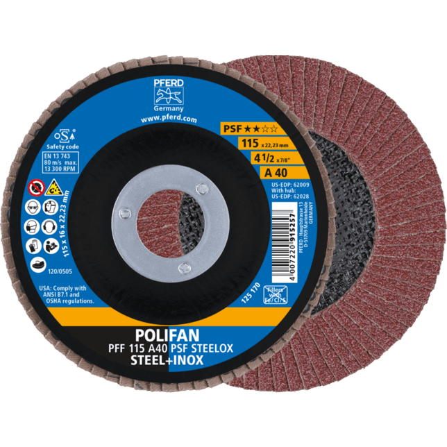 Základná rada Universal Line PSF obsahuje robustné nástroje na spracovanie najbežnejších materiálov. Nástroje Universal Line PSF dosahujú dobré výsledky s vysokou ekonomickou efektívnosťou. POLIFAN lamelový kotúč na oceľ a nerezovú oceľ (INOX) s vysokou rýchlosťou odstraňovania materiálu a dobrou životnosťou nástroja.