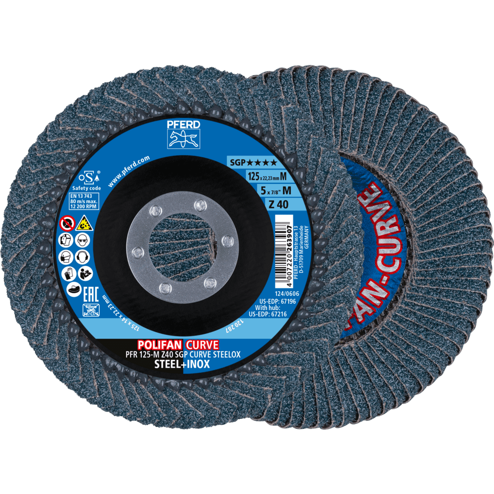 Nástroje špeciálnej línie SGP sú špeciálne vyvinuté pre konkrétne úlohy a ponúkajú používateľovi kľúčové výhody oproti konvenčným produktom. Okrem toho špeciálna línia SGP zahŕňa nástroje, ktoré ponúkajú maximálnu ekonomickú efektívnosť vďaka svojmu mimoriadne vysokému výkonu počas používania. Disk s lamelami POLIFAN-CURVE bol špeciálne vyvinutý na prácu na rohových zvaroch. Je to jediný disk s lamelami na svete, ktorý má lamely na brúsiacej strane, ako aj na zadnej strane a na rádiuse. POLIFAN CURVE od PFERD TOOLS je patentovaný v mnohých krajinách po celom svete. Vysokovýkonný disk s lamelami pre maximálne odstránenie materiálu na oceľ a nerezovú oceľ (INOX).