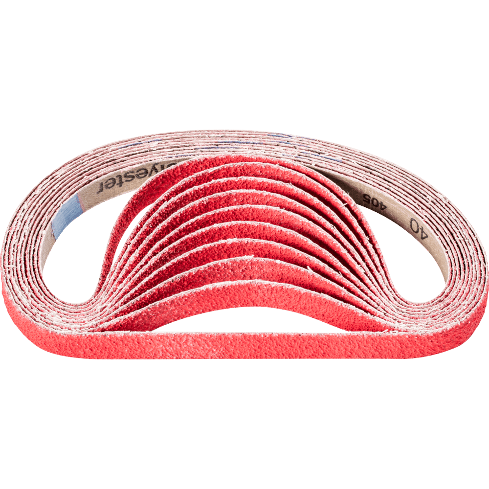 Na agresívne brúsenie s maximálnou rýchlosťou odstraňovania materiálu na tvrdých materiáloch, ktoré zle vedú teplo. Konzistentne vysoký výkon vďaka samoostriacim keramickým oxidačným zrnám. Aktívne brúsiace prísady v povlaku podstatne zlepšujú rýchlosť odstraňovania materiálu, zabraňujú upchávaniu a vedú k chladnejšiemu brúseniu. Krátke pásy sú kompatibilné s bežne dostupnými pásovými brúskami. V norme ISO 2976 sú uvedené pod označením "brúsiace pásy".