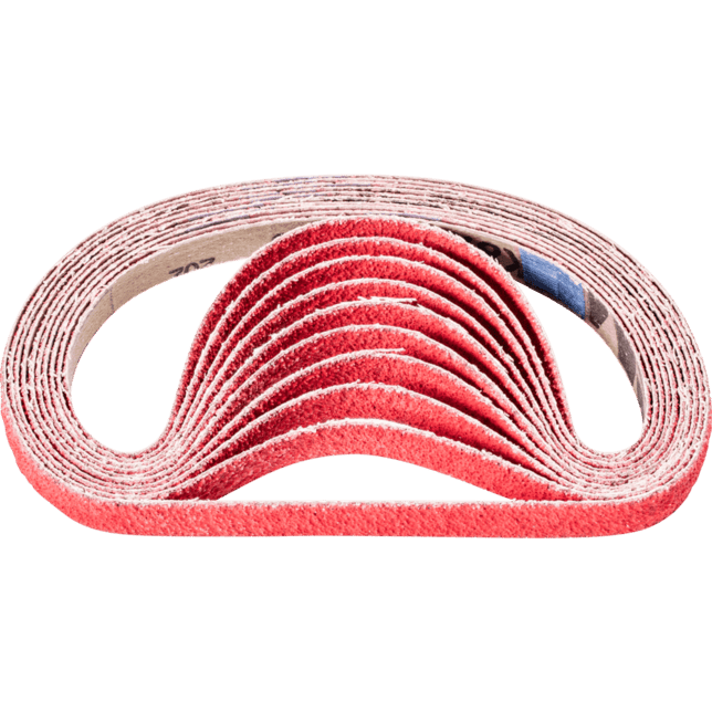 Na agresívne brúsenie s maximálnou rýchlosťou odstraňovania materiálu na tvrdých materiáloch, ktoré zle vedú teplo. Konzistentne vysoký výkon vďaka samoostriacim keramickým oxidačným zrnám. Aktívne brúsiace prísady v povlaku podstatne zlepšujú rýchlosť odstraňovania materiálu, zabraňujú upchávaniu a vedú k chladnejšiemu brúseniu. Krátke pásy sú kompatibilné s bežne dostupnými pásovými brúskami. V norme ISO 2976 sú uvedené pod označením "brúsiace pásy".