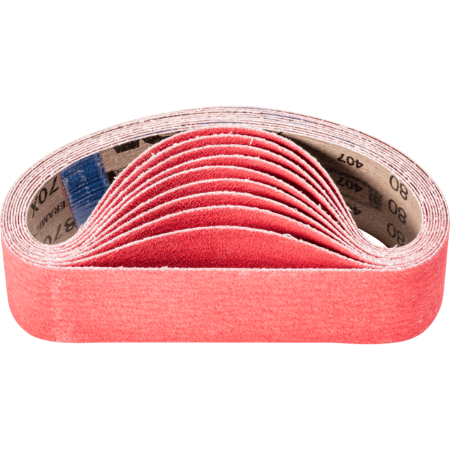 Na agresívne brúsenie s maximálnou rýchlosťou odstraňovania materiálu na tvrdých materiáloch, ktoré zle vedú teplo. Konzistentne vysoký výkon vďaka samoostriacim keramickým oxidačným zrnám. Aktívne brúsiace prísady v povlaku podstatne zlepšujú rýchlosť odstraňovania materiálu, zabraňujú upchávaniu a zabezpečujú chladnejšie brúsenie. Krátke pásy sú kompatibilné s bežne dostupnými pásovými brúskami. V norme ISO 2976 sú uvedené pod označením "brúsiace pásy".
