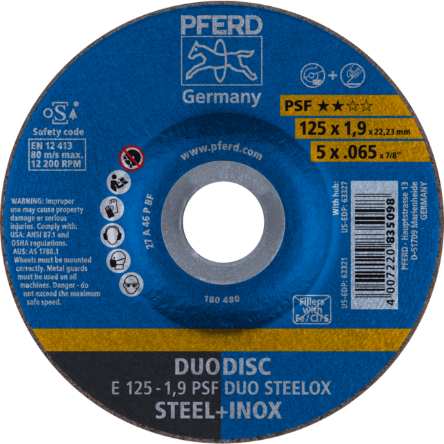 - ÚČINNOSŤ PFERD TOOLS: ÚČINNOSŤ PFERD TOOLS odporúča kombinované kotúče DUODISC na zníženie času výmeny a nastavenia nástrojov.