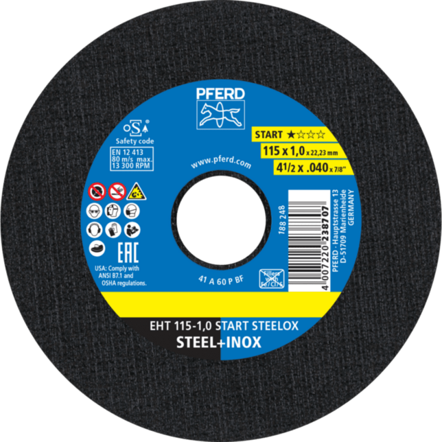 Rada START ponúka spoľahlivú kvalitu PFERD TOOLS pre obchod a montážne práce. Kompaktná rada obsahuje všetky konvenčné nástroje na prácu s oceľou a nerezovou oceľou (INOX). To znamená, že môžete dosiahnuť spoľahlivé výsledky za atraktívne nákupné náklady. Rezací kotúč na oceľ a nerezovú oceľ (INOX) s dobrou rezacou výkonnosťou a dobou životnosti nástroja. Pracovníci po celom svete dôverujú značke Blue a volia tenké rezacie kotúče od PFERD TOOLS. Produktová rada PFERD TOOLS zahŕňa tenké rezacie kotúče v rôznych prevedeniach a preto správne riešenie nástroja pre akúkoľvek aplikáciu – ergonomicky optimalizované, efektívne a s najvyššou úrovňou bezpečnosti. Tenké rezacie kotúče od PFERD TOOLS sa vyznačujú svojou špeciálnou formuláciou spojiva. Intenzívny výskum a vývoj v kombinácii so systematickou implementáciou v moderných výrobných zariadeniach zaručujú vysoké štandardy kvality a bezpečnosti PFERD TOOLS.