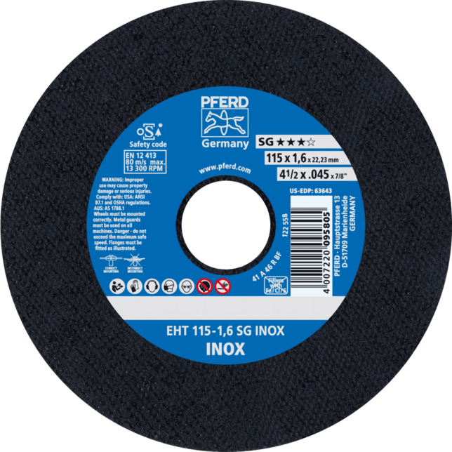Široká škála Performance Line SG ponúka vysoko výkonné riešenie nástrojov pre každú aplikáciu a každý materiál. Nástroje Performance Line SG dosahujú optimálne výsledky s maximálnou hospodárnosťou. Rezné kotúče na nehrdzavejúcu oceľ (INOX) s vysokým rezacím výkonom a maximálnou životnosťou nástroja. Pracovníci po celom svete dôverujú značke Blue a volia tenké rezné kotúče od PFERD TOOLS. Produktová rada PFERD TOOLS zahŕňa tenké rezné kotúče v rôznych prevedeniach a preto správne riešenie nástroja pre akúkoľvek aplikáciu – ergonomicky optimalizované, efektívne a s najvyššou úrovňou bezpečnosti. Tenké rezné kotúče od PFERD TOOLS sa vyznačujú svojou špeciálnou formuláciou spojiva. Intenzívny výskum a vývoj v kombinácii so systematickou implementáciou v moderných výrobných zariadeniach zaručujú vysoké kvalitatívne a bezpečnostné štandardy PFERD TOOLS.