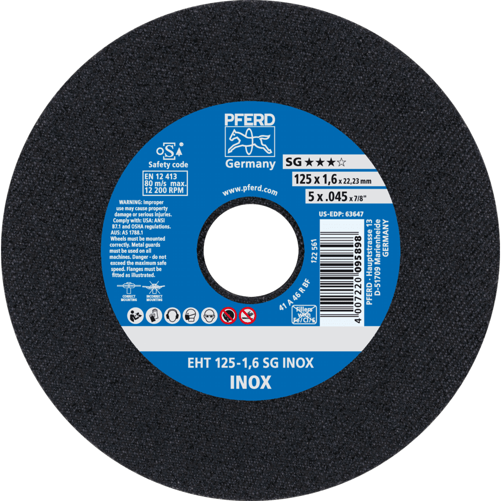 Široká ponuka Performance Line SG ponúka vysoko výkonné riešenie nástrojov pre každú aplikáciu a každý materiál. Nástroje Performance Line SG dosahujú optimálne výsledky s maximálnou hospodárnosťou. Rezné kotúče na nerezovú oceľ (INOX) s vysokým rezacím výkonom a maximálnou životnosťou nástroja. Pracovníci po celom svete dôverujú značke Blue a volia tenké rezné kotúče od PFERD TOOLS. Produktová rada PFERD TOOLS zahŕňa tenké rezné kotúče v rôznych prevedeniach a preto správne riešenie nástroja pre akúkoľvek aplikáciu – ergonomicky optimalizované, efektívne a s najvyššou úrovňou bezpečnosti. Tenké rezné kotúče od PFERD TOOLS sa vyznačujú svojou špeciálnou formuláciou spojiva. Intenzívny výskum a vývoj v kombinácii so systematickou implementáciou v moderných výrobných zariadeniach zaručujú vysoké kvalitatívne a bezpečnostné štandardy PFERD TOOLS.