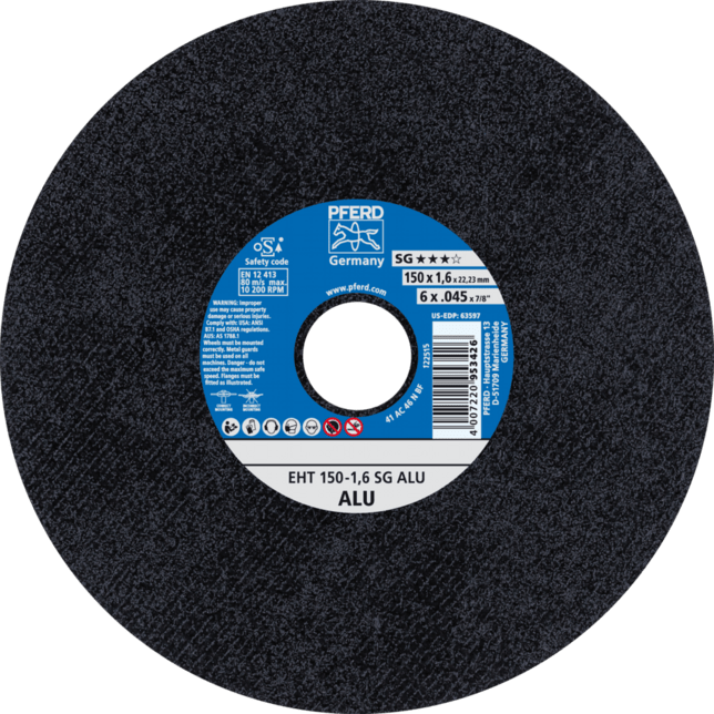 - Špeciálna brúsna zmes a technológia spojiva zabraňujú upchávaniu rezných kotúčov, aj na mäkkom, odolnom hliníku.