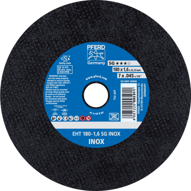 Široká ponuka Performance Line SG ponúka vysoko výkonné riešenie nástrojov pre každú aplikáciu a každý materiál. Nástroje Performance Line SG dosahujú optimálne výsledky s maximálnou hospodárnosťou. Rezné kotúče na nehrdzavejúcu oceľ (INOX) s vysokým rezacím výkonom a maximálnou životnosťou nástroja. Pracovníci po celom svete dôverujú značke Blue a volia tenké rezné kotúče od PFERD TOOLS. Produktová rada PFERD TOOLS zahŕňa tenké rezné kotúče v rôznych prevedeniach a preto správne riešenie nástroja pre akúkoľvek aplikáciu – ergonomicky optimalizované, efektívne a s najvyššou úrovňou bezpečnosti. Tenké rezné kotúče od PFERD TOOLS sa vyznačujú svojou špeciálnou formuláciou spojiva. Intenzívny výskum a vývoj v kombinácii so systematickou implementáciou v moderných výrobných zariadeniach zaručujú vysoké kvalitatívne a bezpečnostné štandardy PFERD TOOLS.