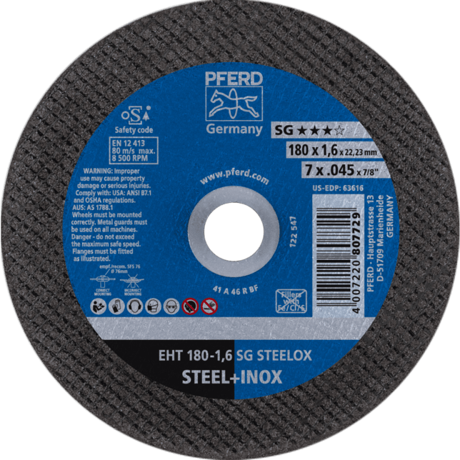 Široká ponuka Performance Line SG ponúka vysoko výkonné riešenie nástrojov pre každú aplikáciu a každý materiál. Nástroje Performance Line SG dosahujú optimálne výsledky s maximálnou hospodárnosťou. Rezné kotúče na oceľ a nerezovú oceľ (INOX) s vysokým rezacím výkonom a maximálnou životnosťou nástroja. Pracovníci po celom svete dôverujú značke Blue a volia tenké rezné kotúče od PFERD TOOLS. Produktová rada PFERD TOOLS zahŕňa tenké rezné kotúče v rôznych prevedeniach a preto správne riešenie nástroja pre akúkoľvek aplikáciu – ergonomicky optimalizované, efektívne a s najvyššou úrovňou bezpečnosti. Tenké rezné kotúče od PFERD TOOLS sa vyznačujú svojou špeciálnou formuláciou spojiva. Intenzívny výskum a vývoj v kombinácii so systematickou implementáciou v moderných výrobných zariadeniach zaručujú vysoké kvalitatívne a bezpečnostné štandardy PFERD TOOLS.