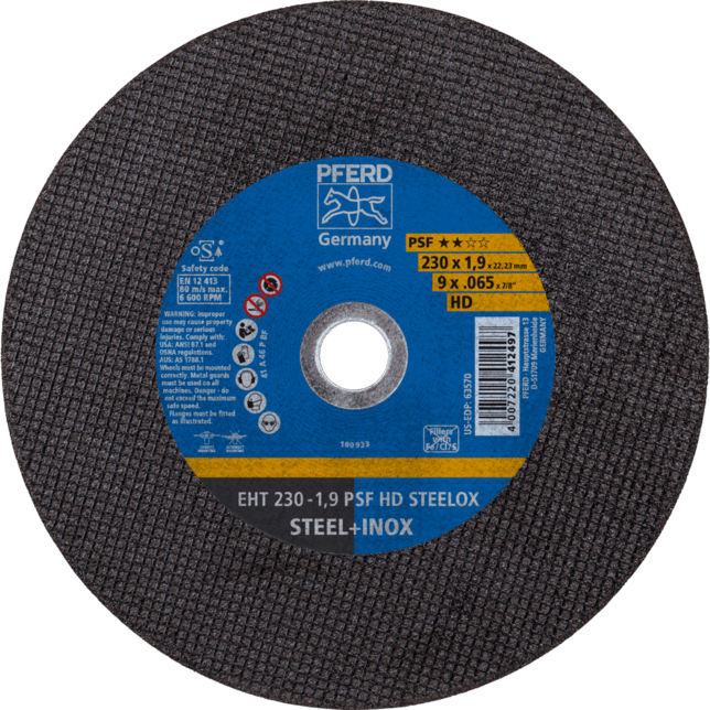Vstupná rada Universal Line PSF zahŕňa robustné náradie na spracovanie najbežnejších materiálov. Nástroje Universal Line PSF dosahujú dobré výsledky s vysokou ekonomickou efektívnosťou. Rezné kotúče na oceľ a nerezovú oceľ (INOX) s vysokým rezacím výkonom a dobrou životnosťou nástroja. Pracovníci po celom svete dôverujú značke Blue a volia tenké rezné kotúče od PFERD TOOLS. Produktová rada PFERD TOOLS zahŕňa tenké rezné kotúče v rôznych prevedeniach a preto správne riešenie nástroja pre akúkoľvek aplikáciu – ergonomicky optimalizované, efektívne a s najvyššou úrovňou bezpečnosti. Tenké rezné kotúče od PFERD TOOLS sa vyznačujú svojou špeciálnou formuláciou spojiva. Intenzívny výskum a vývoj v kombinácii so systematickou implementáciou v moderných výrobných zariadeniach zaručujú vysoké kvalitatívne a bezpečnostné štandardy PFERD TOOLS. HD verzia s vystužením sklenenými vláknami pre náročné aplikácie a zlepšené rezacie správanie.