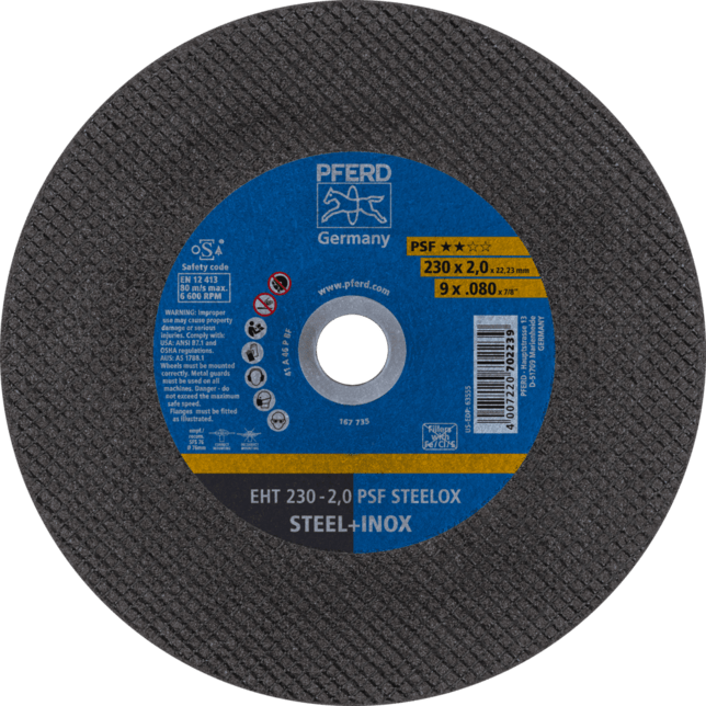 Vstupná rada Universal Line PSF zahŕňa robustné náradie na spracovanie najbežnejších materiálov. Nástroje Universal Line PSF dosahujú dobré výsledky s vysokou ekonomickou efektívnosťou. Rezné kotúče na oceľ a nerezovú oceľ (INOX) s vysokým rezacím výkonom a dobrou životnosťou nástroja. Pracovníci po celom svete dôverujú značke Blue a volia tenké rezné kotúče od PFERD TOOLS. Produktová rada PFERD TOOLS zahŕňa tenké rezné kotúče v rôznych prevedeniach a preto správne riešenie náradia pre akúkoľvek aplikáciu – ergonomicky optimalizované, efektívne a s najvyššou úrovňou bezpečnosti. Tenké rezné kotúče od PFERD TOOLS sa vyznačujú svojou špeciálnou formuláciou spojiva. Intenzívny výskum a vývoj v kombinácii so systematickou implementáciou v moderných výrobných zariadeniach zaručujú vysoké kvalitatívne a bezpečnostné štandardy PFERD TOOLS.