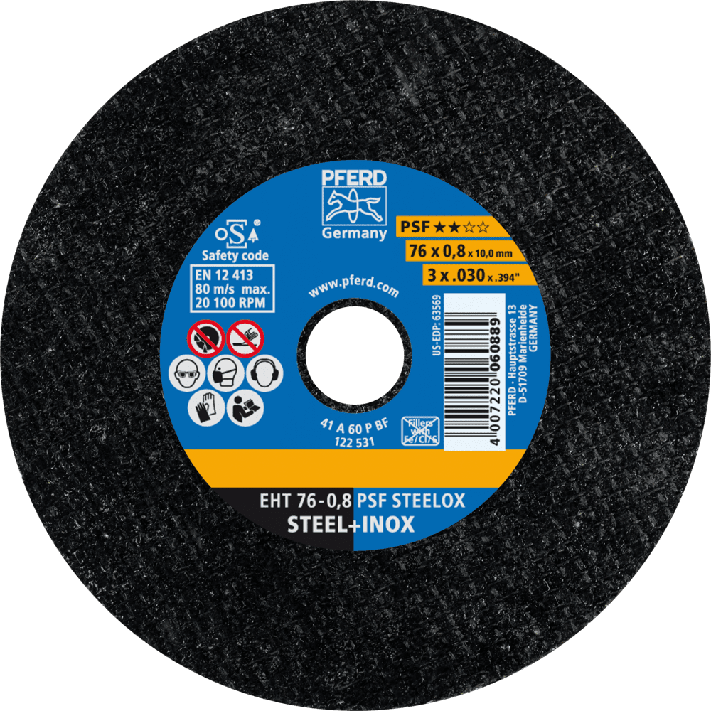 Vstupná rada Universal Line PSF zahŕňa robustné náradie na spracovanie najbežnejších materiálov. Nástroje Universal Line PSF dosahujú dobré výsledky s vysokou ekonomickou efektívnosťou. Rezné kotúče na oceľ a nerezovú oceľ (INOX) s vysokým rezacím výkonom a dobrou životnosťou nástroja. Pracovníci po celom svete dôverujú značke Blue a volia tenké rezné kotúče od PFERD TOOLS. Produktová rada PFERD TOOLS zahŕňa tenké rezné kotúče v rôznych prevedeniach a preto správne riešenie nástroja pre akúkoľvek aplikáciu – ergonomicky optimalizované, efektívne a s najvyššou úrovňou bezpečnosti. Tenké rezné kotúče od PFERD TOOLS sa vyznačujú svojou špeciálnou formuláciou spojiva. Intenzívny výskum a vývoj v kombinácii so systematickou implementáciou v moderných výrobných zariadeniach zaručujú vysoké kvalitatívne a bezpečnostné štandardy PFERD TOOLS.