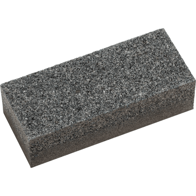 Ostrenie kameňa s dvoma rôznymi veľkosťami zrna. Hrubá horná strana je určená na profilovanie a ostrenie veľkých montovaných bodov s hrubými väzbami a zrnami. Jemná spodná strana je určená na profilovanie a ostrenie montovaných bodov s jemnými väzbami a zrnami.