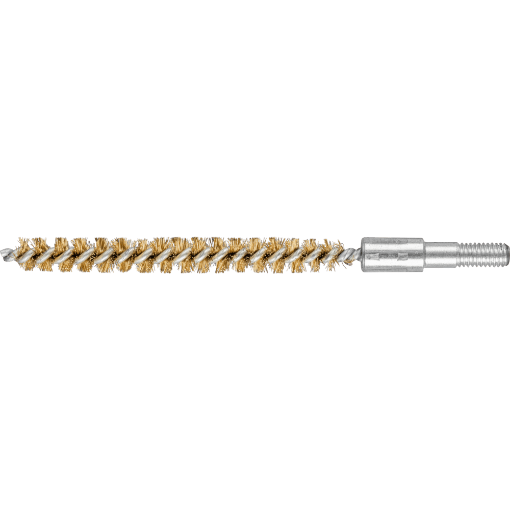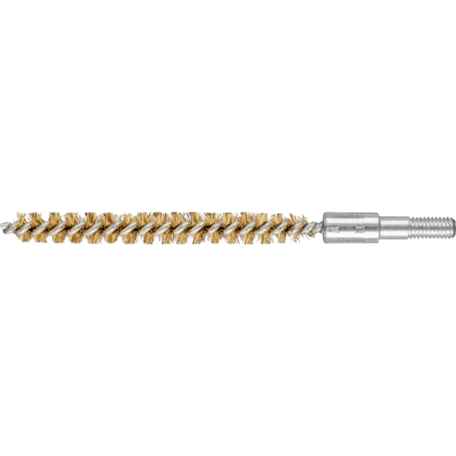 Obzvlášť vhodné na odhrotovanie a čistenie rúr, závitov, spojovacích manžiet a valcov. Kefy s mosadznými drôtmi sú vhodné na špecifické aplikácie, ako je povrchová úprava na obrobkoch vyrobených z medi a mosadze. V porovnaní s oceľovými drôtmi sú mosadzné drôty mäkšie a flexibilnejšie. Pre všetky kefy s mosadznými drôtmi používa PFERD TOOLS kvalitu drôtu CuZn37. Mosadzné drôty odolávajú teplotám až do 180 °C. Okrem závitu má táto rúrková kefa stopku s priemerom 6 mm.
