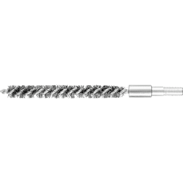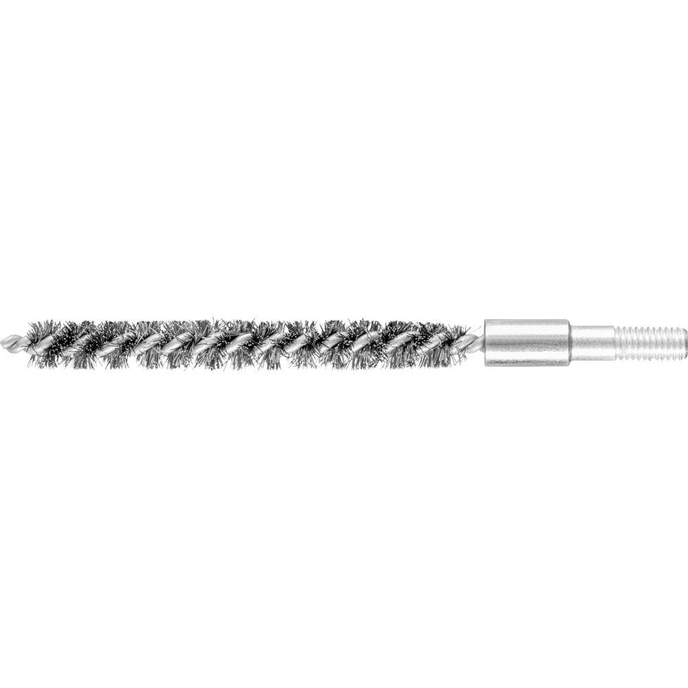 Obzvlášť vhodné na odhrotovanie a čistenie rúr, závitov, spojovacích manžiet a valcov. Oceľový drôt je najbežnejší materiál vlákna. Kefy s oceľovým drôtom ako materiálom vlákna sú obzvlášť vhodné na prácu na povrchoch a odhrotovanie. Špeciálny drôt PFERD TOOLS má vysokú pevnosť v ťahu a únosnosť ohybu. To zabezpečuje, že sa drôt opotrebováva optimálnym spôsobom, ako aj dlhú životnosť náradia, aj pri extrémnych aplikáciách čistenia. Oceľový drôt odoláva teplotám až do 300 °C. Okrem závitu má táto rúrková kefa 6 mm stopku.