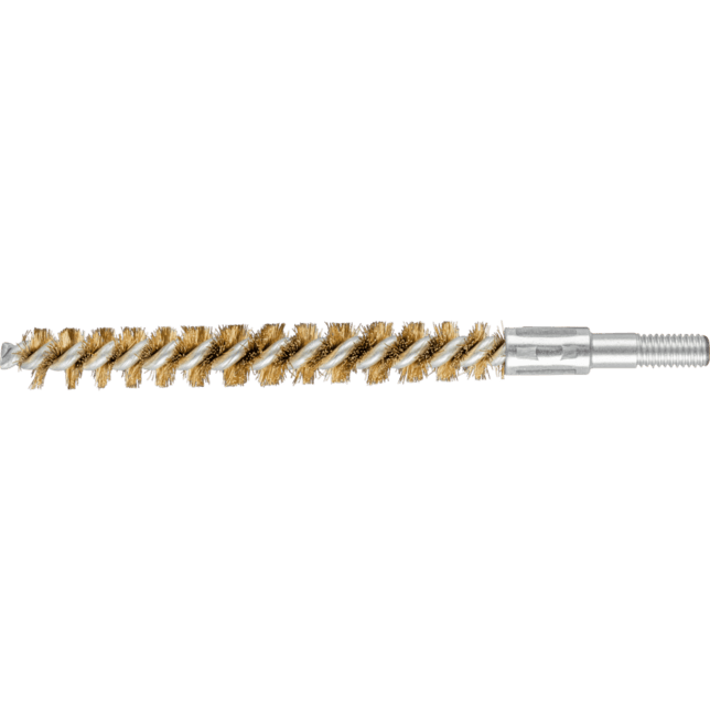 Obzvlášť vhodné na odhrotovanie a čistenie rúr, závitov, spojovacích manžiet a valcov. Kefy s mosadznými drôtmi sú vhodné na špecifické aplikácie, ako je povrchová úprava na obrobkoch vyrobených z medi a mosadze. V porovnaní s oceľovými drôtmi je mosadzný drôt mäkší a flexibilnejší. Pre všetky kefy s mosadzným drôtom používa PFERD TOOLS kvalitu drôtu CuZn37. Mosadzný drôt odoláva teplotám až do 180 °C. Okrem závitu má táto rúrková kefa stopku s priemerom 6 mm.