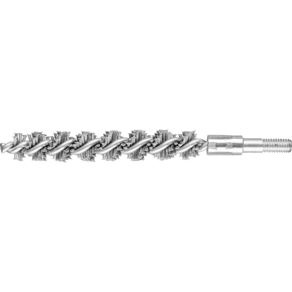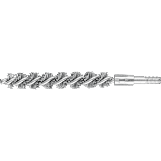Obzvlášť vhodné na odhrotovanie a čistenie rúr, závitov, spojovacích manžiet a valcov. Kefy so silikónovým karbidom (SiC) sú obzvlášť vhodné na odhrotovanie a zlepšovanie povrchu. Plastové vlákno odoláva teplotám až do 220 °C. Okrem závitu má táto rúrková kefa 6 mm stopku.