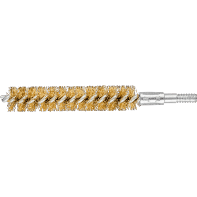 Obzvlášť vhodné na odhrotovanie a čistenie rúr, závitov, spojovacích manžiet a valcov. Kefy s mosadznými drôtmi sú vhodné na špecifické aplikácie, ako je povrchová úprava na obrobkoch vyrobených z medi a mosadze. V porovnaní s oceľovými drôtmi je mosadzný drôt mäkší a flexibilnejší. Pre všetky kefy s mosadzným drôtom používa PFERD TOOLS kvalitu drôtu CuZn37. Mosadzný drôt odoláva teplotám až do 180 °C. Okrem závitu má táto rúrková kefa stopku s priemerom 6 mm.