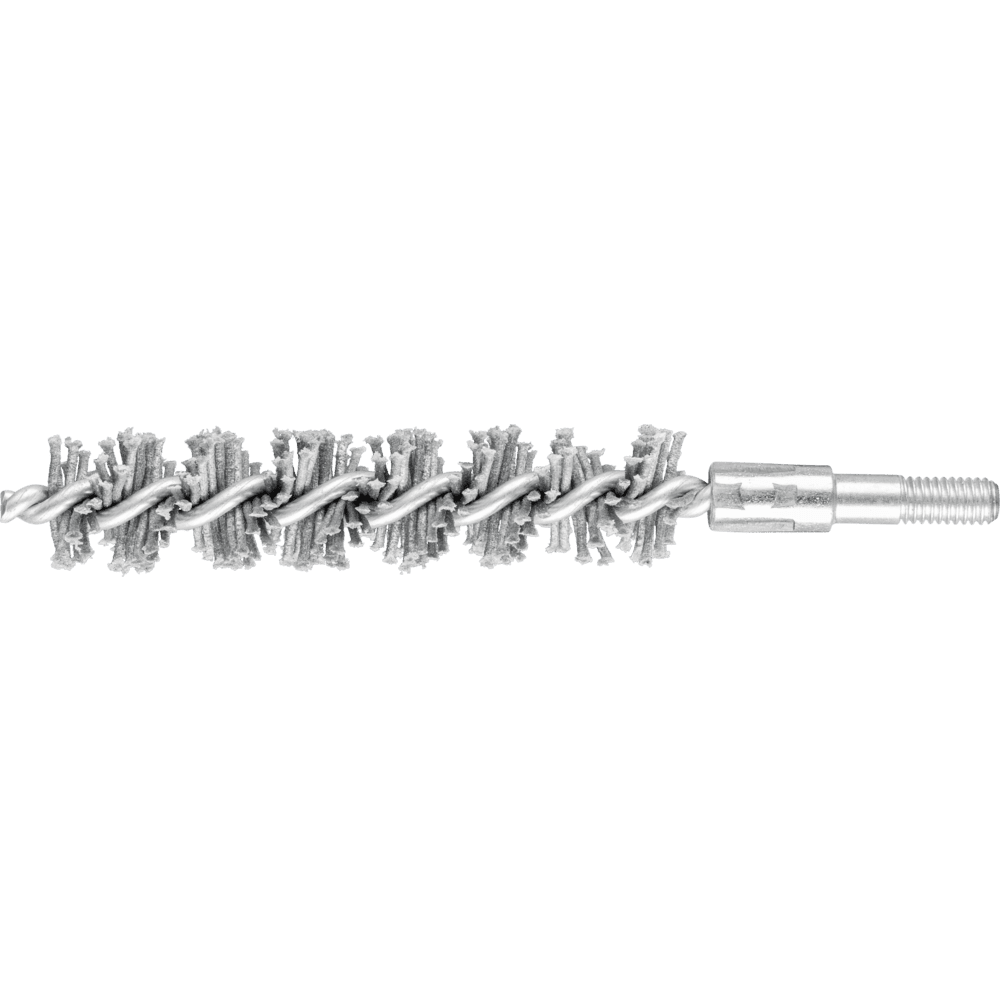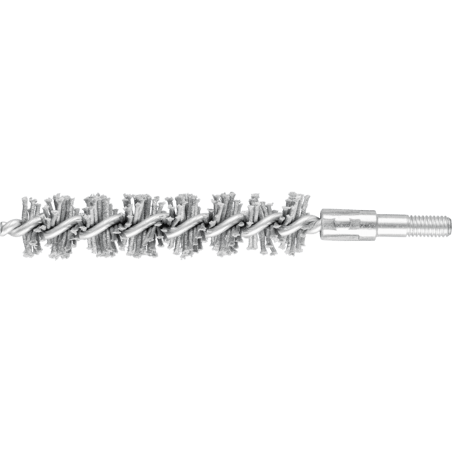 Obzvlášť vhodné na odhrotovanie a čistenie rúr, závitov, spojovacích manžiet a valcov. Kefy so silikónovým karbidom (SiC) sú obzvlášť vhodné na odhrotovanie a zlepšovanie povrchu. Plastové vlákno odoláva teplotám až do 220 °C. Okrem závitu má táto rúrková kefa 6 mm stopku.