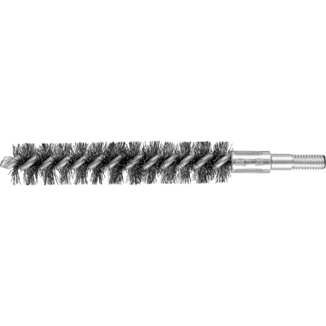 Obzvlášť vhodné na odhrotovanie a čistenie rúr, závitov, spojovacích manžiet a valcov. Oceľový drôt je najbežnejší materiál vlákna. Kefy s oceľovým drôtom ako materiálom vlákna sú obzvlášť vhodné na prácu na povrchoch a odhrotovanie. Špeciálny drôt PFERD TOOLS má vysokú pevnosť v ťahu a únosnosť pri ohybe. To zabezpečuje, že sa drôt opotrebováva optimálnym spôsobom, ako aj dlhú životnosť náradia, aj pri extrémnych aplikáciách čistenia. Oceľový drôt odoláva teplotám až do 300 °C. Okrem závitu má táto rúrková kefa stopku s priemerom 6 mm.