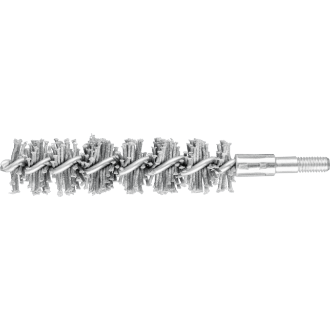 Obzvlášť vhodné na odhrotovanie a čistenie rúr, závitov, spojovacích manžiet a valcov. Kefy so silikónovým karbidom (SiC) sú obzvlášť vhodné na odhrotovanie a zlepšovanie povrchu. Plastové vlákno odoláva teplotám až do 220 °C. Okrem závitu má táto rúrková kefa stopku s priemerom 6 mm.