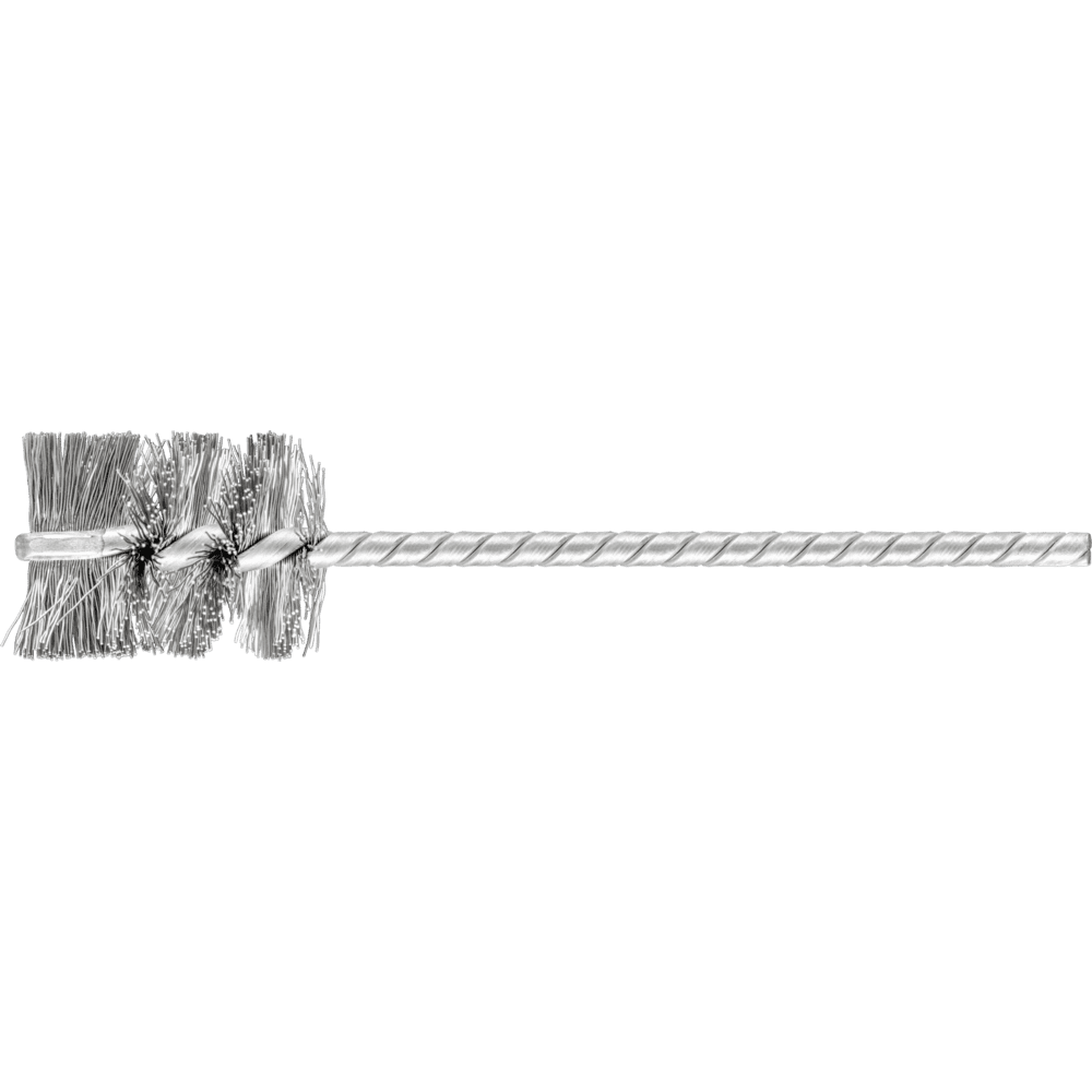 Na ľahké čistenie a odhrotovanie závitových otvorov alebo drážok, napr. drážok pre kľúče. Aby sa splnili osobitné požiadavky na prácu s nerezovou oceľou (INOX), PFERD TOOLS používa drôtovú kvalitu 1.4310 (V2A) pre všetky INOX kefy. Praktické skúsenosti z priemyslu ukázali, že to ponúka veľmi dobrú odolnosť voči korózii s optimálnou životnosťou nástroja. Všetky kefy PFERD TOOLS s INOX vláknami sú farebne označené modrou farbou a sú vhodné na použitie na všetkých nerezových oceľach (INOX), ako je V4A. Drôtová kvalita 1.4310 má tendenciu stať sa feromagnetickou pri studenom spracovaní; t.j. môže byť priťahovaná magnetmi. Dôvodom je zmena mikroštruktúry spôsobená deformáciou (napr. počas procesu ťahania drôtu). To nemá žiadny vplyv na kvalitu a odolnosť voči korózii INOX vlákna. Vlákno je stále odolné voči korózii. Nerezový drôt (INOX) odoláva teplotám až do 450 °C.