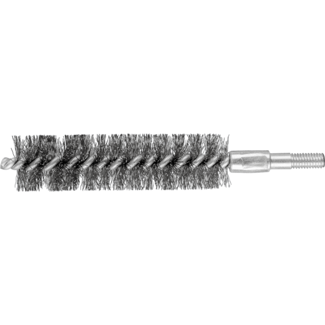 Obzvlášť vhodné na odhrotovanie a čistenie rúr, závitov, spojovacích manžiet a valcov. Aby sa splnili osobitné požiadavky na prácu s nerezovou oceľou (INOX), PFERD TOOLS používa drôtovú kvalitu 1.4310 (V2A) pre všetky INOX kefy. Praktické skúsenosti z priemyslu ukázali, že to ponúka veľmi dobrú odolnosť voči korózii s optimálnou životnosťou nástroja. Všetky kefy PFERD TOOLS s INOX vláknami sú farebne označené modrou farbou a sú vhodné na použitie na všetkých nerezových oceľach (INOX), ako je V4A. Drôtová kvalita 1.4310 má tendenciu stať sa feromagnetickou pri studenom spracovaní; t.j. môže byť priťahovaná magnetmi. Dôvodom je zmena mikroštruktúry spôsobená deformáciou (napr. počas procesu ťahania drôtu). To nemá žiadny vplyv na kvalitu a odolnosť voči korózii INOX vlákna. Vlákno je stále odolné voči korózii. Nerezový drôt (INOX) odoláva teplotám až do 450 °C. Okrem závitu má táto rúrková kefa 6 mm stopku.