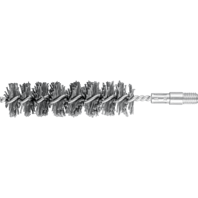 Obzvlášť vhodné na odhrotovanie a čistenie rúr, závitov, spojovacích manžiet a valcov. Kefy so silikónkarbidom (SiC) sú obzvlášť vhodné na odhrotovanie a zlepšovanie povrchu. Plastové vlákno odoláva teplotám až do 220 °C. Okrem závitu má táto rúrková kefa 10 mm stopku.