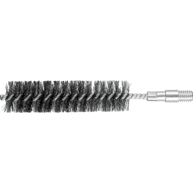 Obzvlášť vhodné na odhrotovanie a čistenie rúr, závitov, spojovacích manžiet a valcov. Oceľový drôt je najbežnejší materiál vlákna. Kefy s oceľovým drôtom ako materiálom vlákna sú obzvlášť vhodné na prácu na povrchoch a odhrotovanie. Špeciálny drôt PFERD TOOLS má vysokú pevnosť v ťahu a únosnosť pri ohybe. To zabezpečuje, že sa drôt opotrebováva optimálnym spôsobom, ako aj dlhú životnosť náradia, aj pri extrémnych aplikáciách čistenia. Oceľový drôt odoláva teplotám až do 300 °C. Okrem závitu má táto rúrková kefa 10 mm stopku.