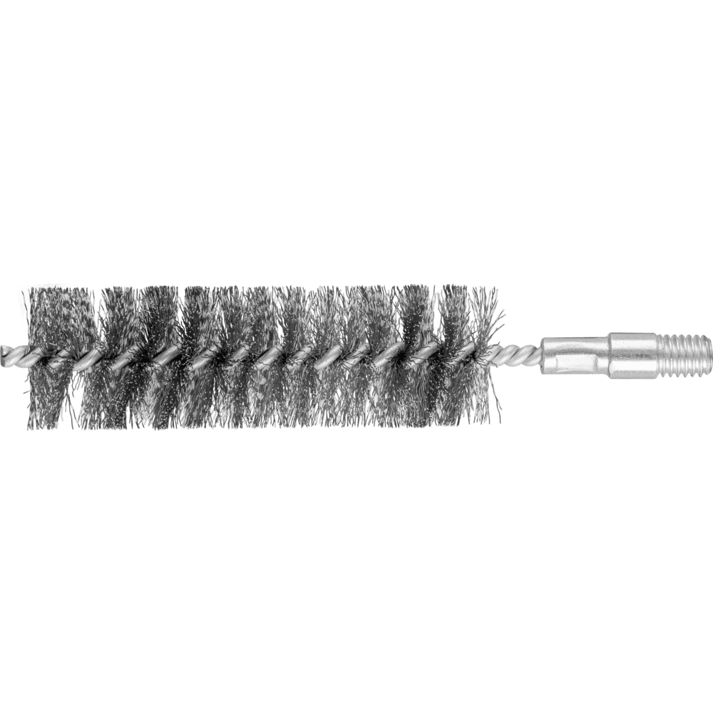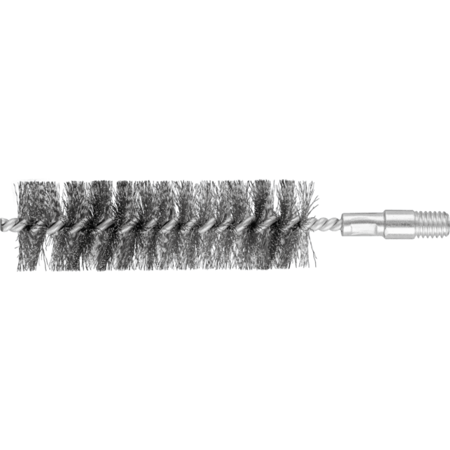 Obzvlášť vhodné na odhrotovanie a čistenie rúr, závitov, spojovacích manžiet a valcov. Aby sa splnili špecifické požiadavky na prácu s nehrdzavejúcou oceľou (INOX), PFERD TOOLS používa drôtovú kvalitu 1.4310 (V2A) pre všetky INOX kefy. Praktické skúsenosti z priemyslu ukázali, že to ponúka veľmi dobrú odolnosť voči korózii s optimálnou životnosťou nástroja. Všetky kefy PFERD TOOLS s INOX vláknami sú farebne označené modrou farbou a sú vhodné na použitie na všetkých nehrdzavejúcich oceľach (INOX), ako je V4A. Drôtová kvalita 1.4310 má tendenciu stať sa feromagnetickou pri studenom spracovaní; t.j. môže byť priťahovaná magnetmi. Dôvodom je zmena mikroštruktúry spôsobená deformáciou (napr. počas procesu ťahania drôtu). To nemá žiadny vplyv na kvalitu a odolnosť voči korózii INOX vlákna. Vlákno je stále odolné voči korózii. Drôt z nehrdzavejúcej ocele (INOX) odoláva teplotám až do 450 °C. Okrem závitu má táto rúrková kefa 10 mm stopku.