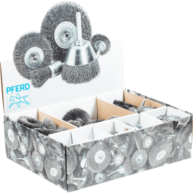 Súprava rôznych kolesových, pohárových a koncových kefiek s 6 mm stopkou. Súprava obsahuje 80 adaptérnych kefiek.