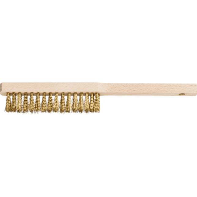 PFERD TOOLS ponúka rozsiahly sortiment škrabacích štetcov s rôznymi tvarmi a materiálmi vlákien. Vynikajúce na jemné čistenie na hladkých povrchoch. Štetce s mosadznými drôtmi sú vhodné na špecifické aplikácie, ako je povrchová úprava na obrobkoch vyrobených z medi a mosadze. V porovnaní s oceľovými drôtmi je mosadzný drôt mäkší a flexibilnejší. Pre všetky štetce s mosadzným drôtom PFERD TOOLS používa kvalitu drôtu CuZn37. Mosadzný drôt odoláva teplotám až do 180 °C. Priemer vlákna 0,15 mm umožňuje jemné čistenie a vytvára hladký povrch.